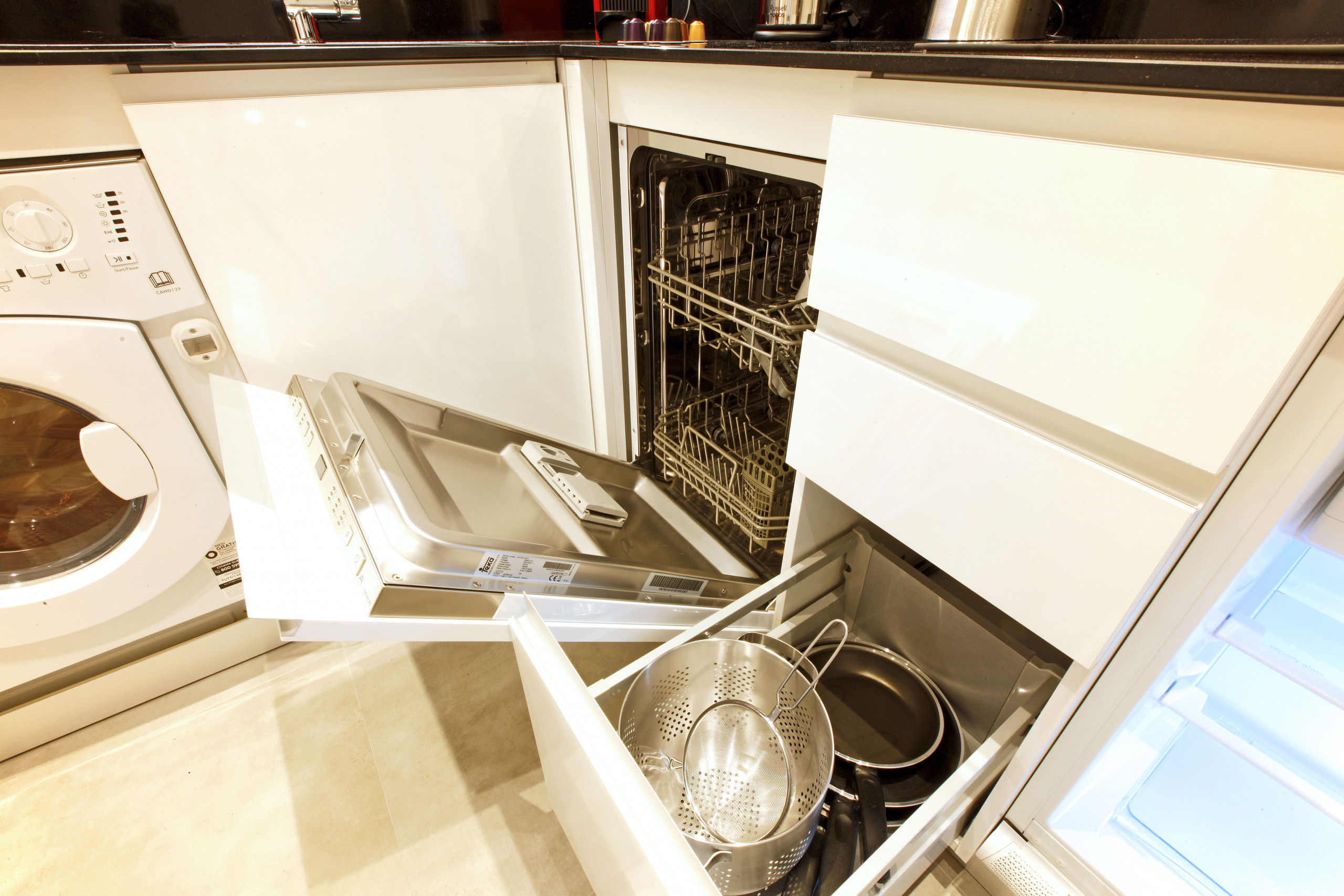 In the hotplate of glass ceramics open plan kitchen, refrigerator, microwave, freezer, dishwasher, dishes/cutlery, kitchen utensils, coffee machine, toaster, kettle and juicer are provided.