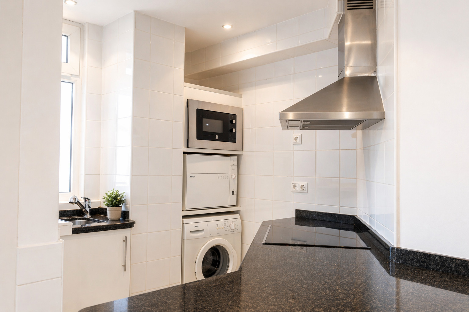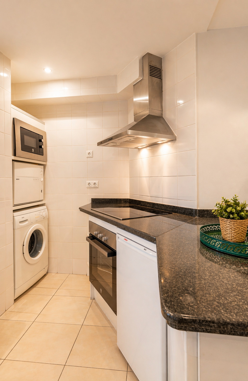 The American kitchen is fully equipped with state-of-the-art appliances, including a refrigerator, freezer, washing machine, dishwasher, oven, microwave, coffee maker, toaster, kettle, juicer, and a wide variety of kitchenware. This allows guests to prepare meals and enjoy gastronomic moments in the apartment.