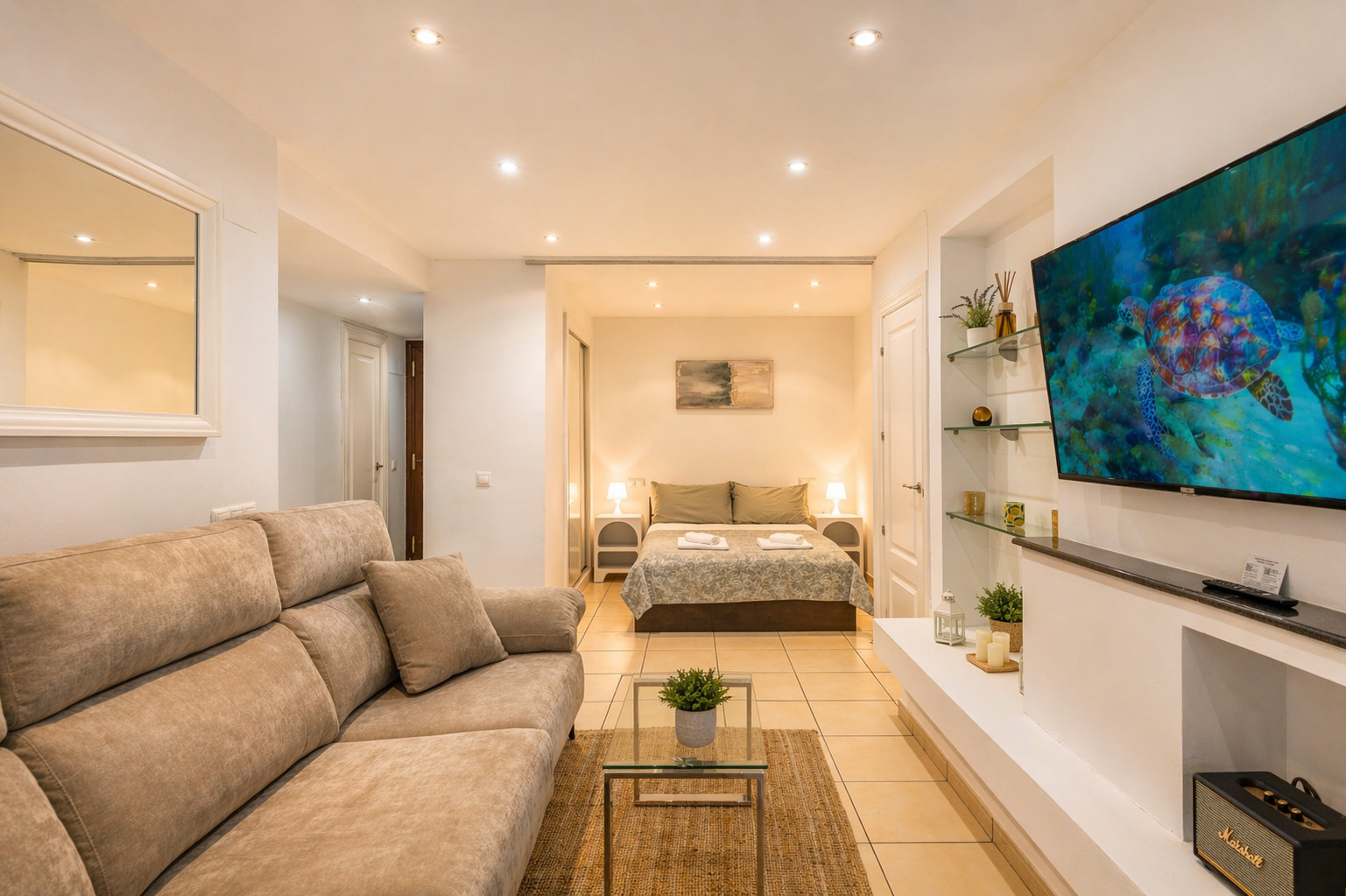 Its location is unbeatable, just 350 metres from Bajondillo Beach, with easy access to other beaches such as Carihuela and Playamar. It is surrounded by shops, restaurants and just a few metres from supermarkets, which makes it a perfect destination to enjoy Torremolinos.